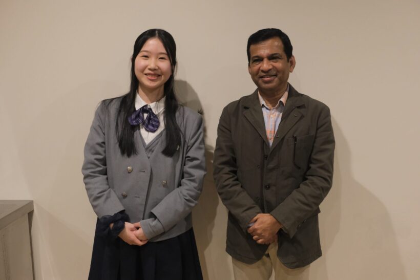 最優秀賞を受賞した仲南実さん(写真左)と、三条市立大学のアハメド シャハリアル学長(写真右)