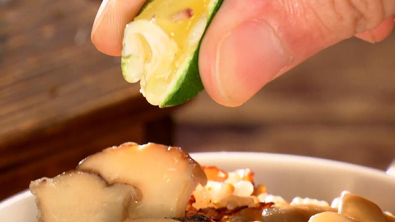 カボスをかけると、さっぱり爽やかになり、これまでとは違うキノコの味わいになります。