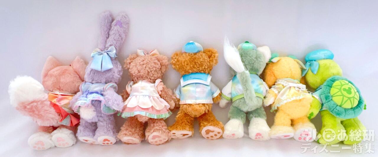 「カラフルハピネス」のお洋服を着たダッフィー&フレンズ全員のポージープラッシー
