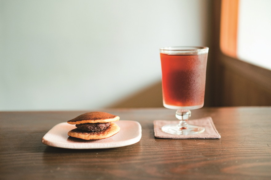 シングルオリジンの朝餉(あさけ)の「冷たい珈琲」(650円)と、小豆の品種にまでこだわった「どらやき 小豆」(300円)
