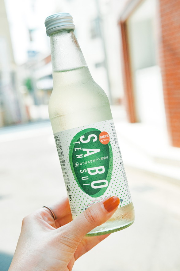 サボテンエキス入りの炭酸ドリンク「SABOTEN SUI」(300円)は、クセがなくすっきりとした味わいです。ぜひ、「勝川駅前通商店街」へふらっと散歩してみては。