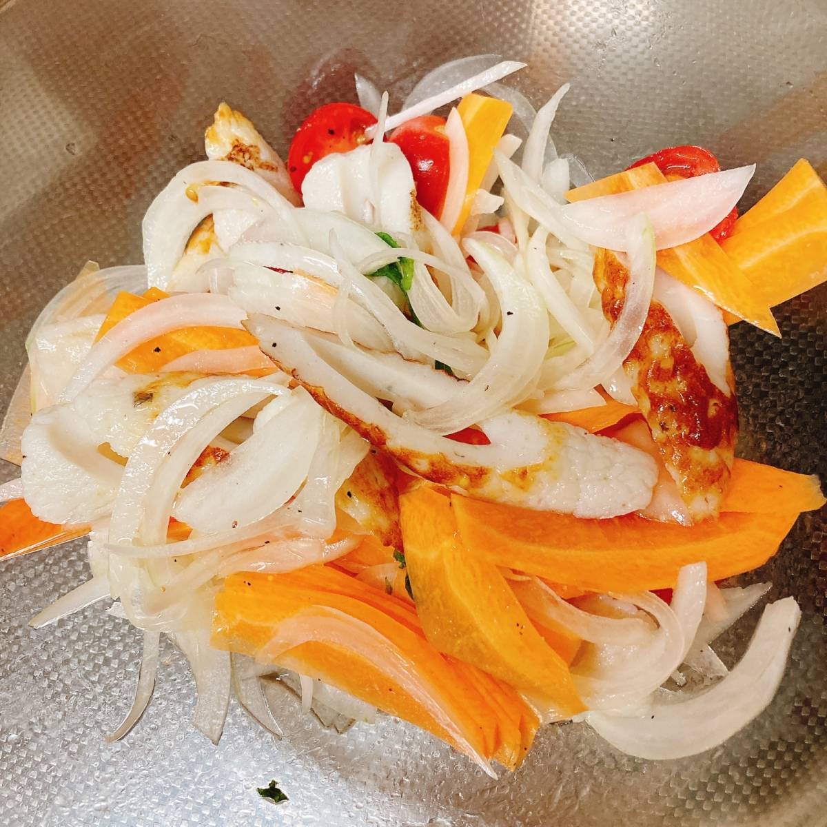 ちくわと野菜を切って漬け込むだけ♪ 紀文公式レシピのマリネに挑戦しました。 レシピ引用元:https://www.kibun.co.jp/recipes/11007/index.html