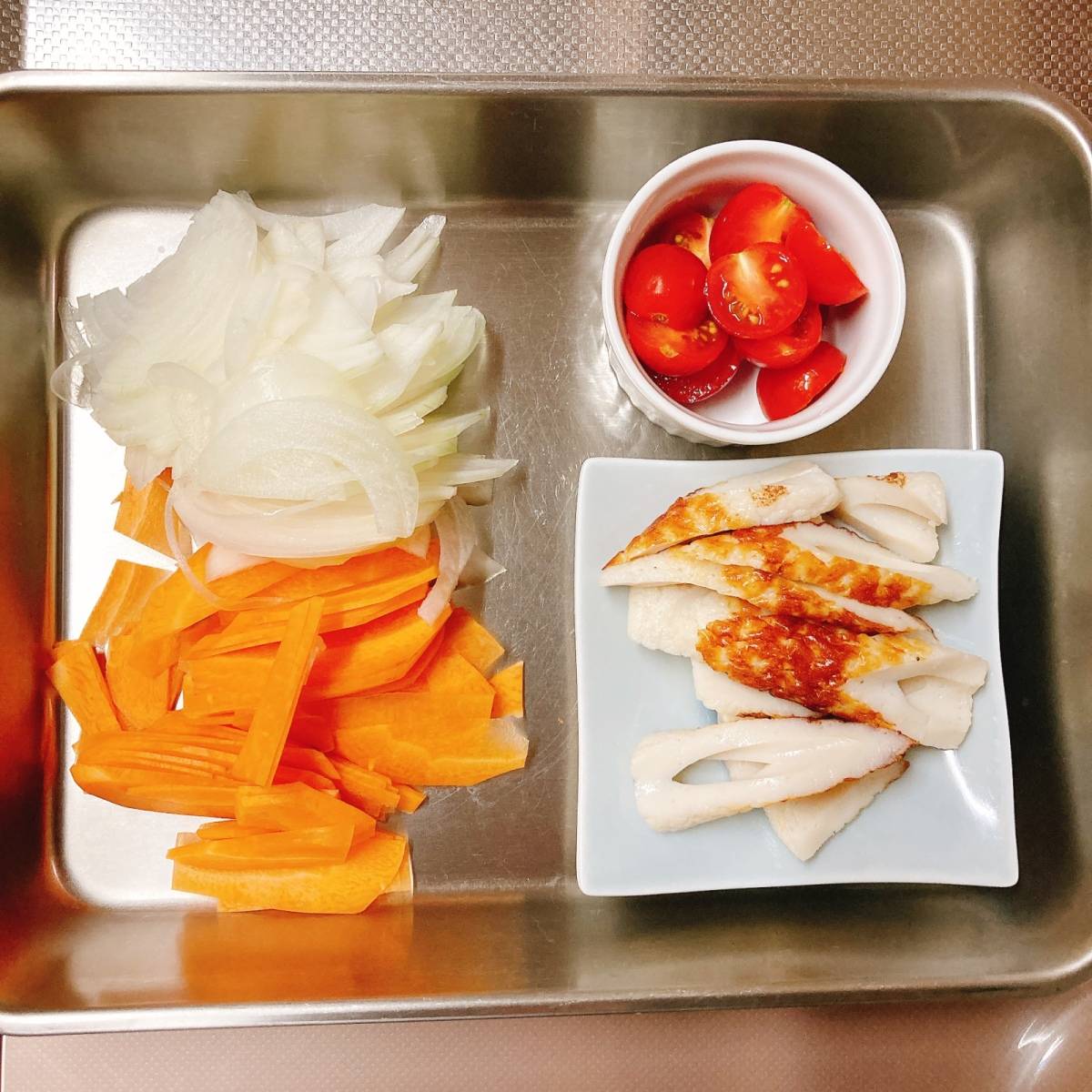 ちくわは7mmの斜め切り、にんじんと玉ねぎは薄切りにしましょう。