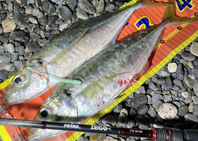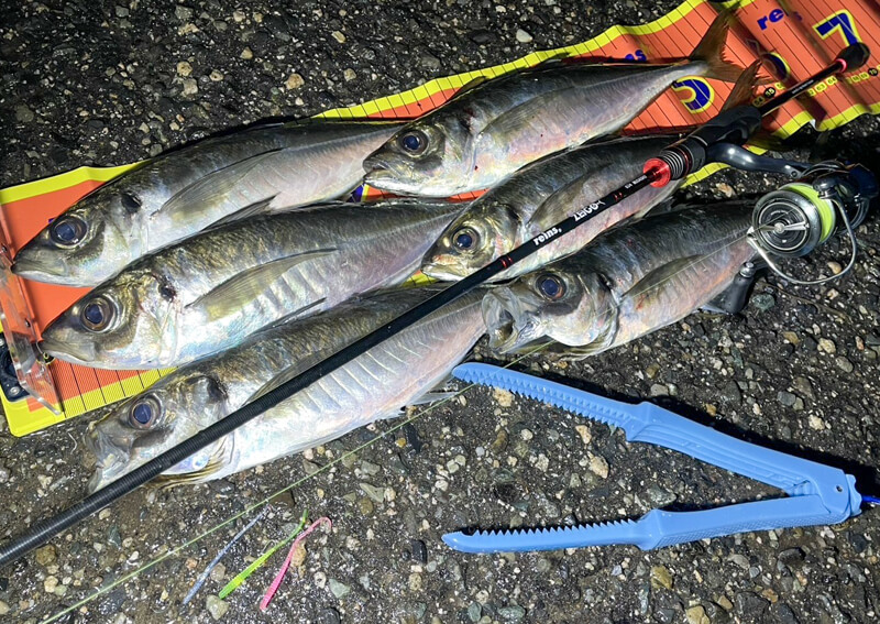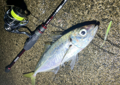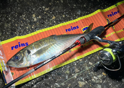 そしてアジを掛けたあとも、持ち前のリーチの長さとバットパワーを活かして40cmクラスの大アジの強烈な引きにも抵抗。ロッドが負けることとなく安心してファイトを楽しむことができました!