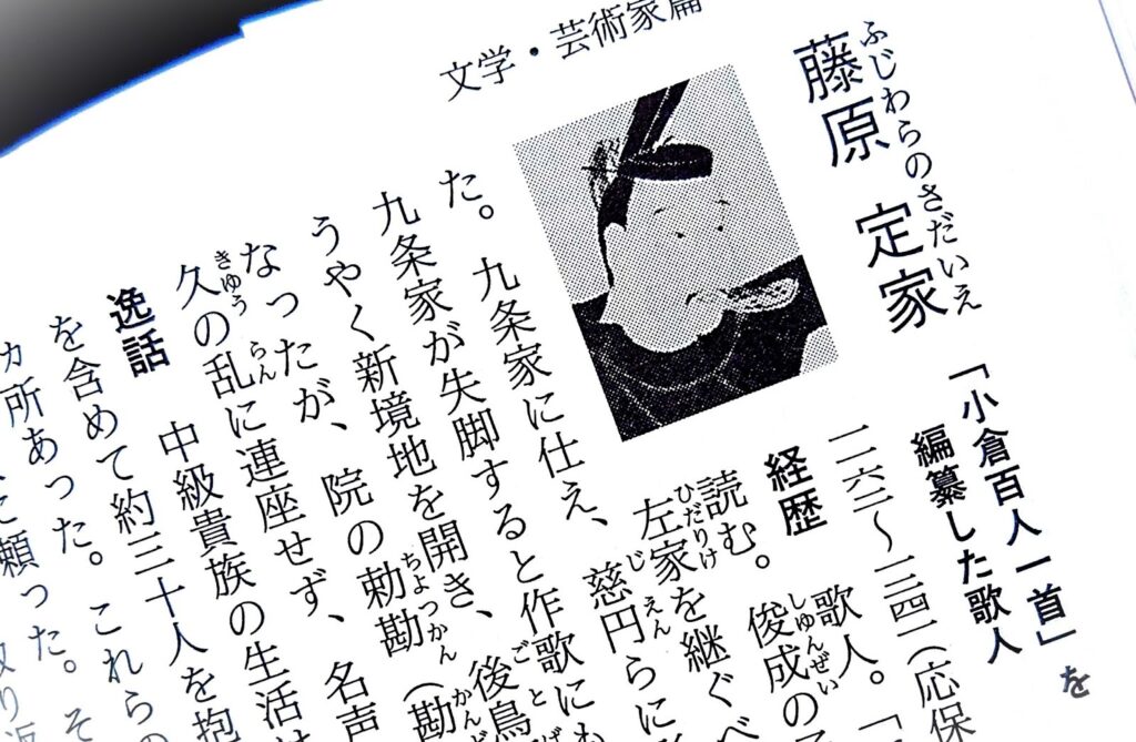 この「小倉百人一首」の撰者は、鎌倉の歌人である藤原定家(1162~1241)。ここでは親しみを込めて定家(さだいえ)さんとお呼びします。