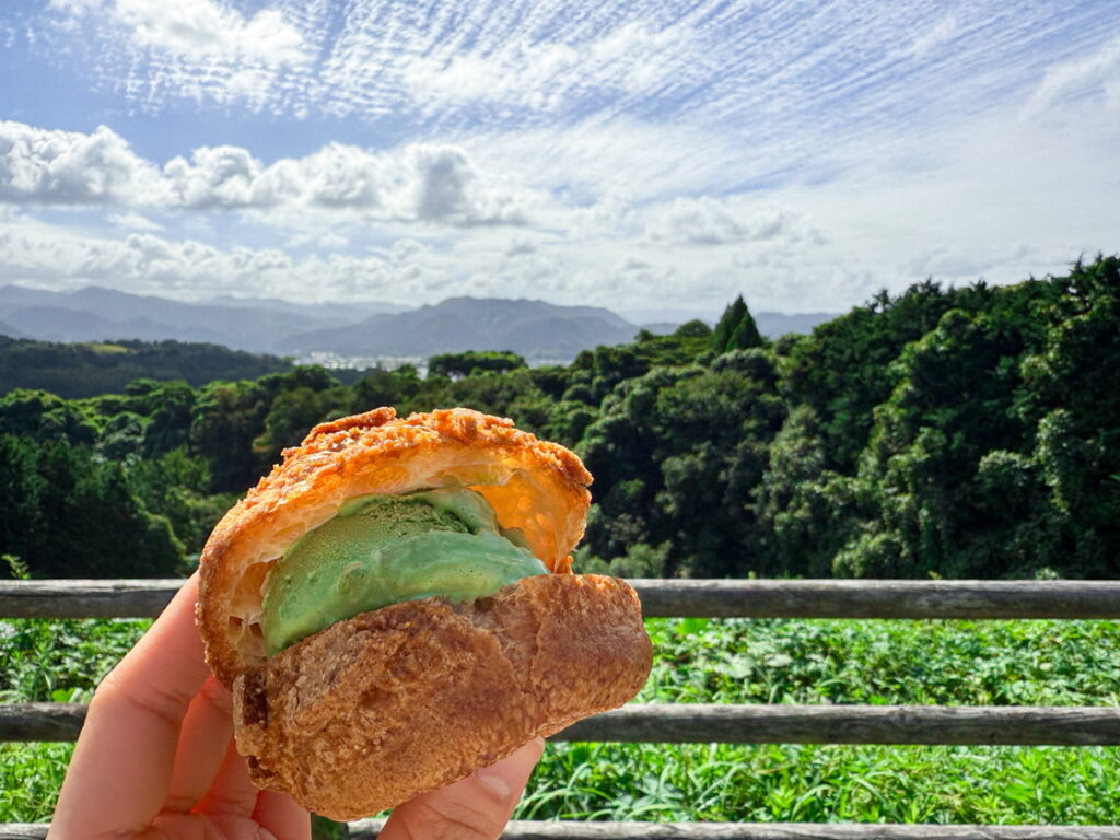 地元の人気ケーキ屋さんKITEのクッキーシューとアロハカフェのオリジナルジェラートのコラボレーションです!3種類(大山ミルク・大山抹茶・日替わり)のジェラートから選ぶことができます。