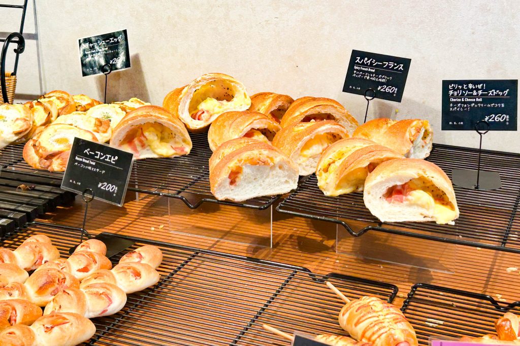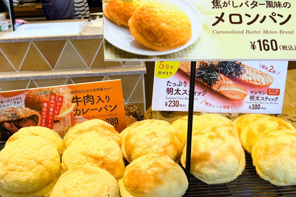 「熊本県産和栗の二層仕立てモンブラン(280円)」「店内仕込みの自家製カレー 牛肉入りカレーパン(280円)」