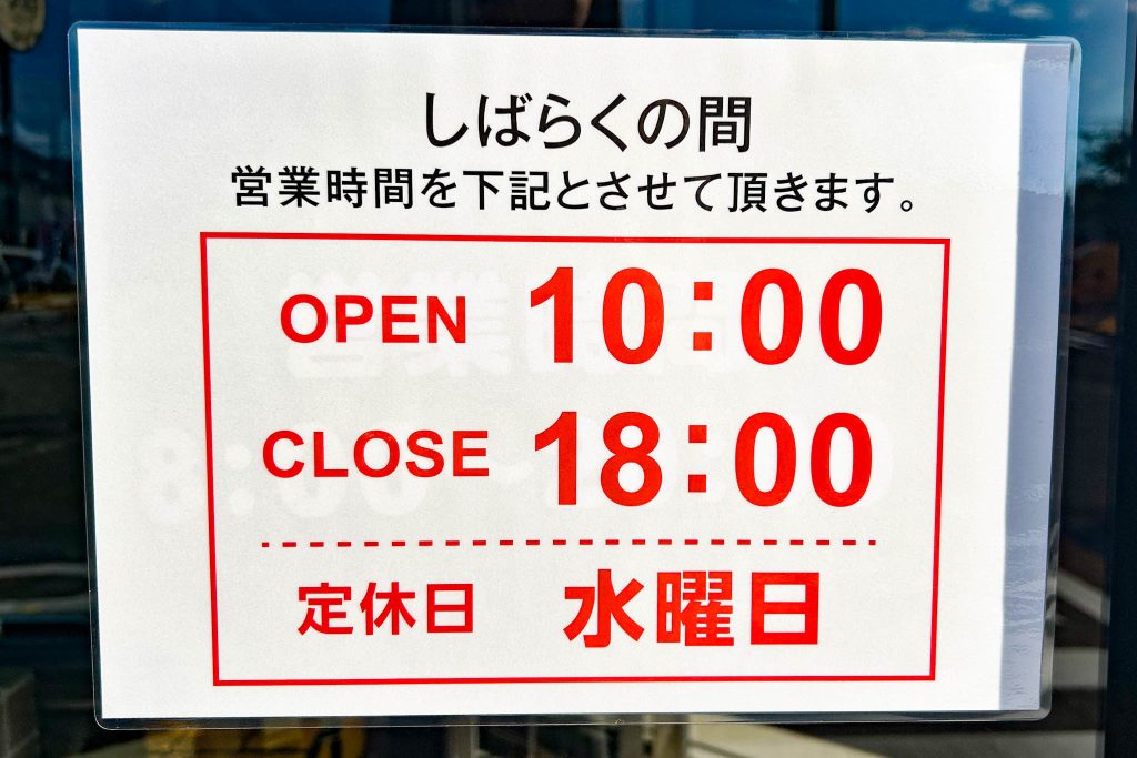 なお、しばらくの間は営業時間を10:00から18:00に短縮しているようなので要注意。