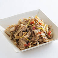 煮汁が1/4位の分量にまで減ったら、仕上げにショウガと赤ピーマンを加えて軽く馴染ませる。火を止め、器に盛り、好みで黒コショウを振る。【POINT】ショウガは仕上げに加えて、フレッシュな辛味を効かせる。