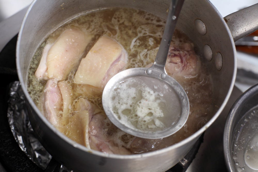 鶏モモは煮込むほどにだしが出る骨付きを使う。骨付きのモモ肉がなければ手羽先などで代用してもOK。肉は赤身がきれいなピンク色でハリのあるものを選ぶ。