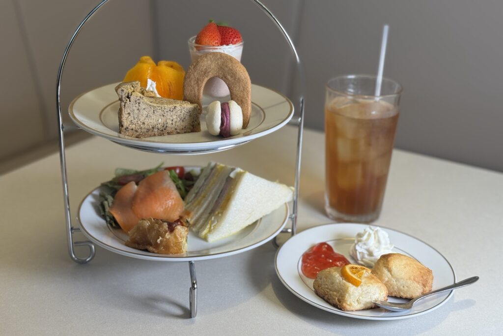 下段にはサンドウィッチやキッシュ、サラダなどの軽食が揃い甘味と塩味のバランスも絶妙。ボリュームもしっかりあります。