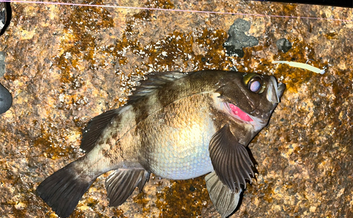 足元にセイゴらしき魚影があったので通してみると、メバルが食いついてきた。まだ数は少ないようで、他にメバルは見えなかったが予想外のメバルに嬉しさと冬の到来を感じる事となった。