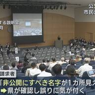 県は同姓の参加者に発言の有無を確認し、謝罪する予定。情報公開決定の起案・決裁時のチェック不足が原因としており、今後は複数人によるチェックを徹底するとしている。