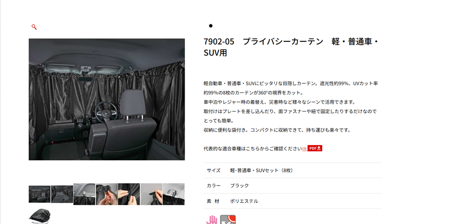 BONFORM の「プライバシーカーテン 軽・普通車・SUV用」は、遮光率約99%・UVカット率約99%の8枚構成で、車内を360°遮る高いプライバシー機能を備えています。