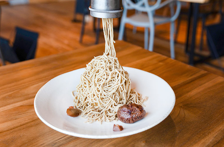 このメニュー最大の特徴が、自分の手でマロンペーストを“生搾り”して仕上げる体験型スイーツ。贅沢に楽しむ、こだわりのモンブランをご堪能あれ♪