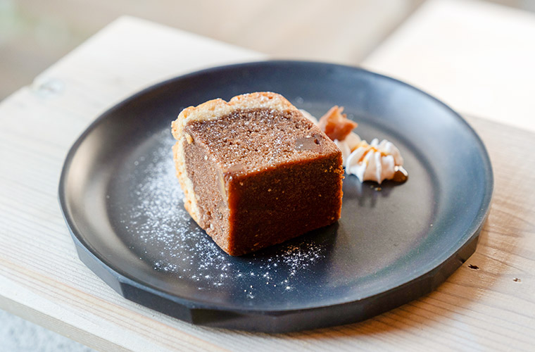 見た目がキュートなアメリカ発のハイブリッドスイーツ『ブルッキー』。クッキーのサクサク感とブラウニーのしっとり感が同居。中にはもちろん、自家製の丹波栗がイン。テイクアウトOKなので、三谷渓谷の自然と一緒におやつタイムを過ごしてみて♪