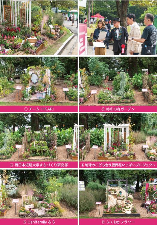 秋晴れとなった審査当日、会場の福岡市植物園では「一人一花サミット」が同時開催され、多くの来園者で賑わう中、今年の作庭テーマ「オシャレして出かけたくなる一人一花フラワーガーデン」をもとに作庭された、個性豊かな花壇10作品が公開されました。