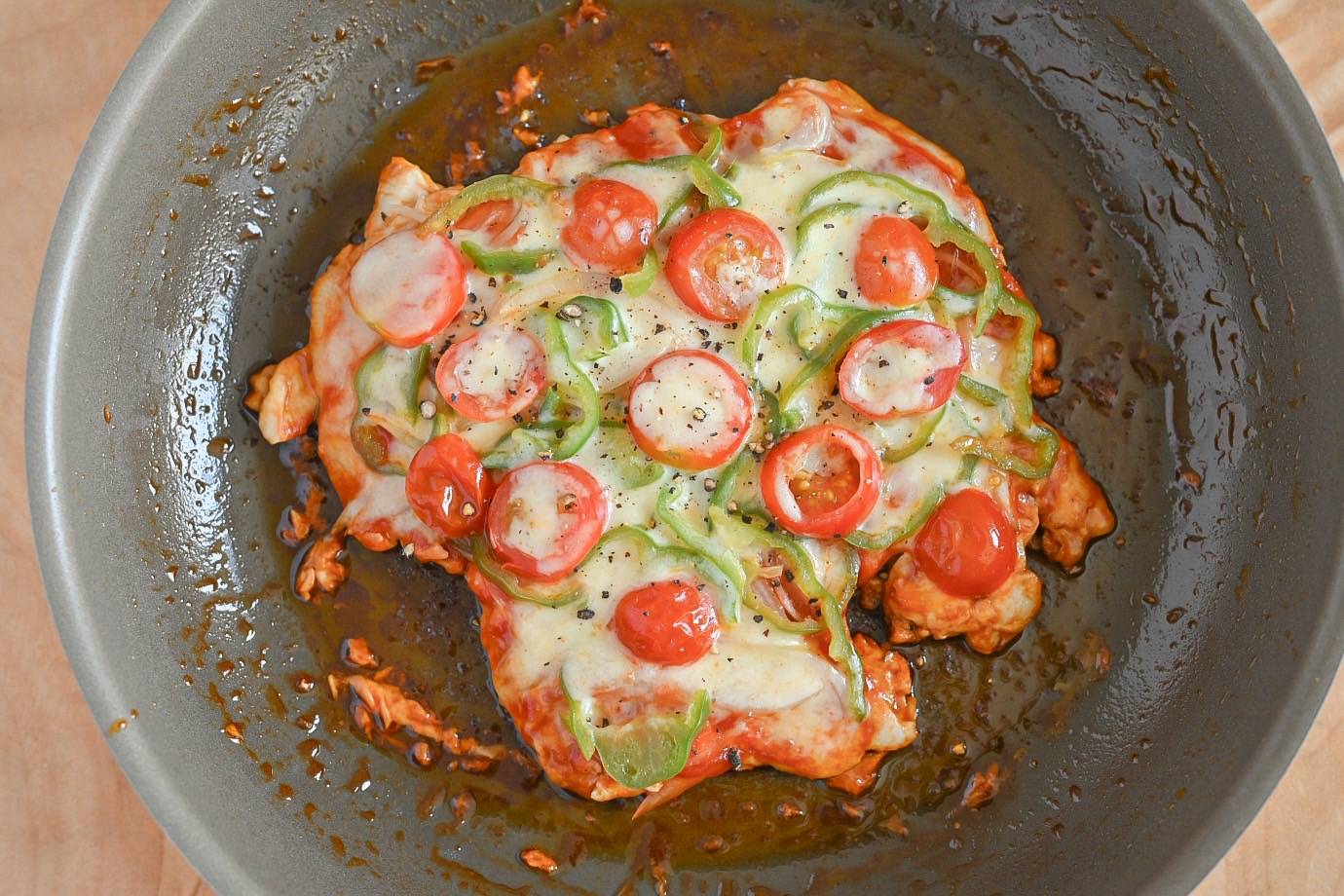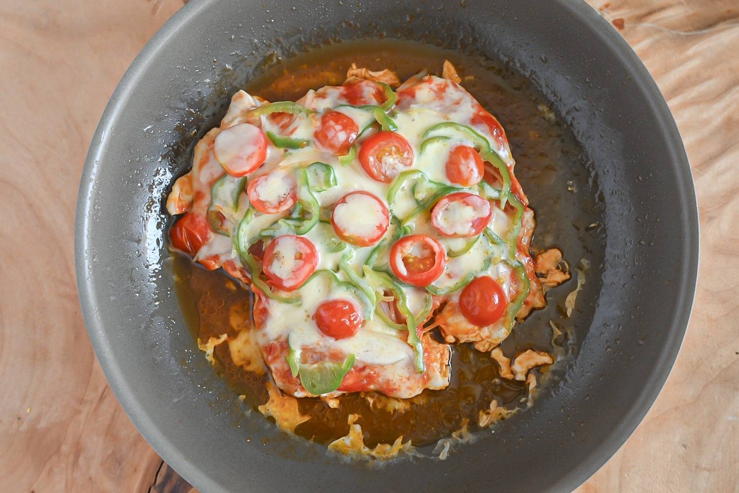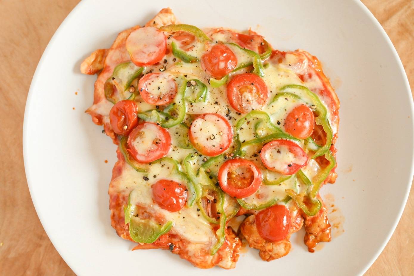 ピザ生地の代わりに鶏むね肉を使うと、旨みもボリュームもアップしますよ。具材によってさまざまな味を楽しむことができるのもうれしいポイントです。