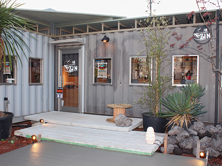 福島市成川にある観葉植物専門店「グリーンフィール」の敷地内にオープンしたコンテナカフェ『Cafe 燻ZIN(いぶしジン)』。