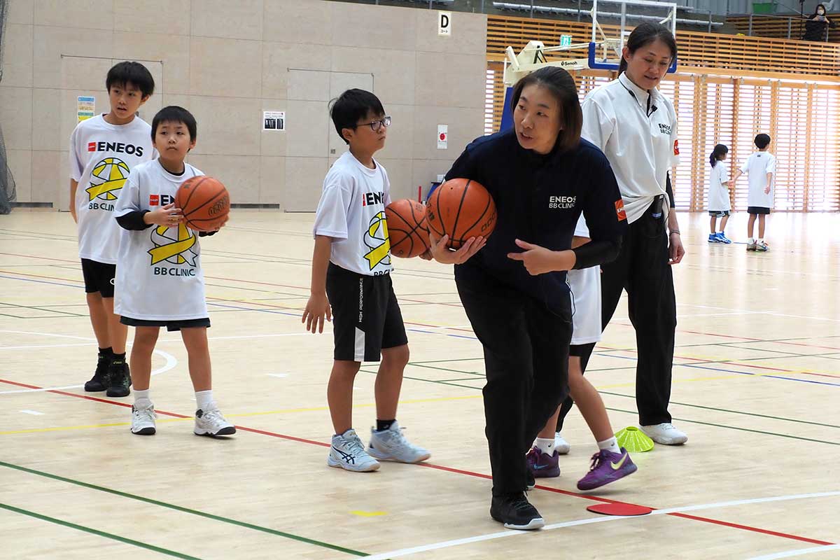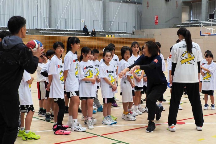 この教室は、ENEOSが社会貢献活動の一環として全国各地で開いており、競技の普及や次世代選手の育成などを目的にする。1995年に始まり、年間50~60カ所で実施。今回は、小佐野ミニバスのコーチ小林光宏さん(36)が応募サイトを目にし、申し込み実現した。