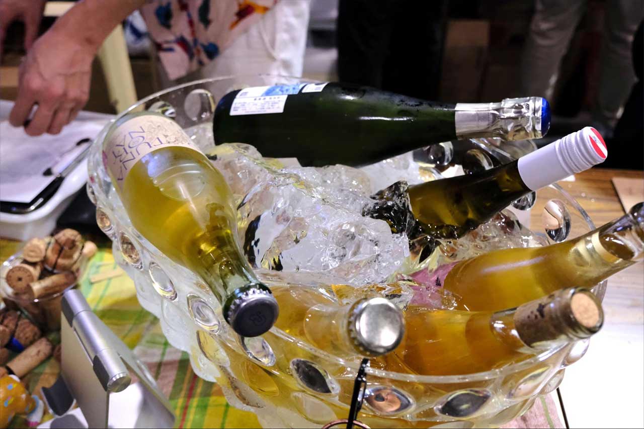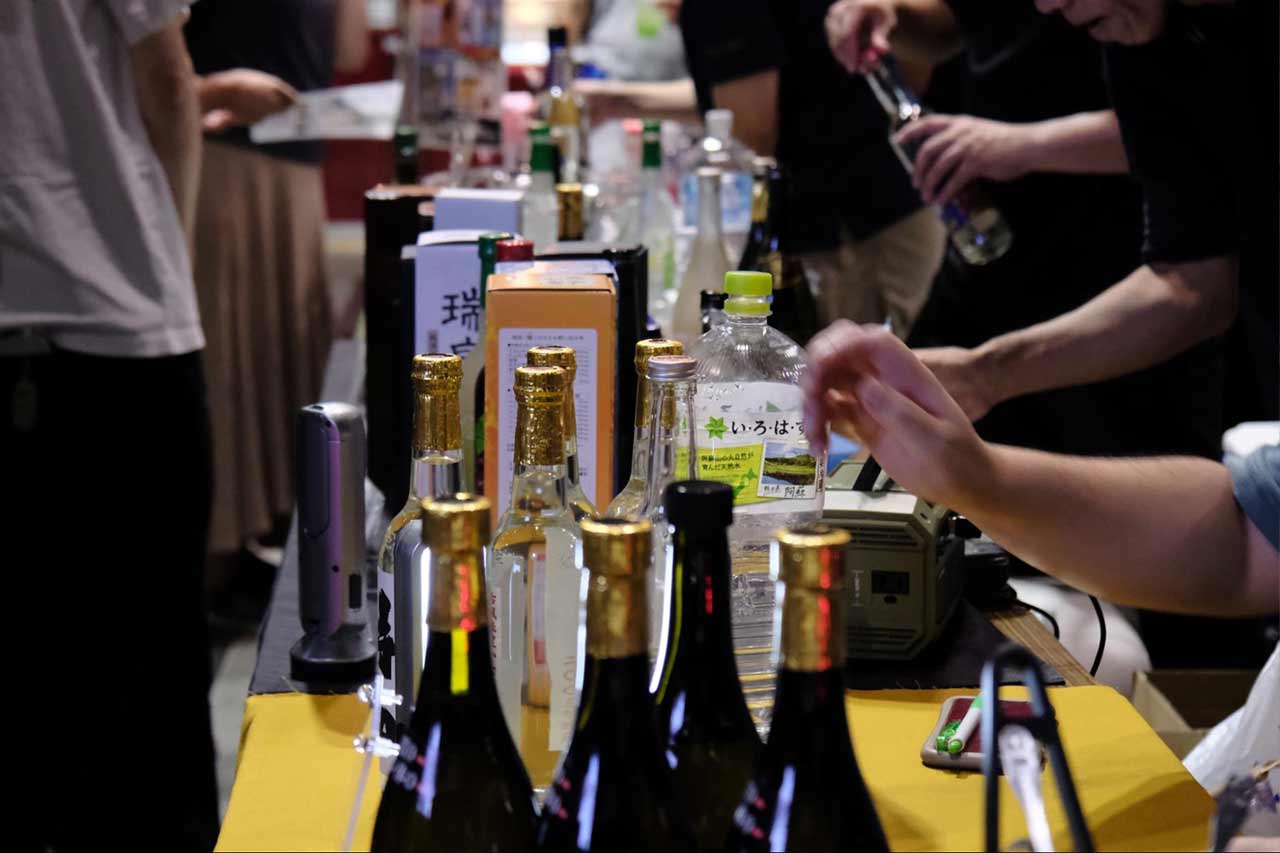 まずは喉を潤す!!泡盛、ワイン、ビールが並ぶ<酒ブース>