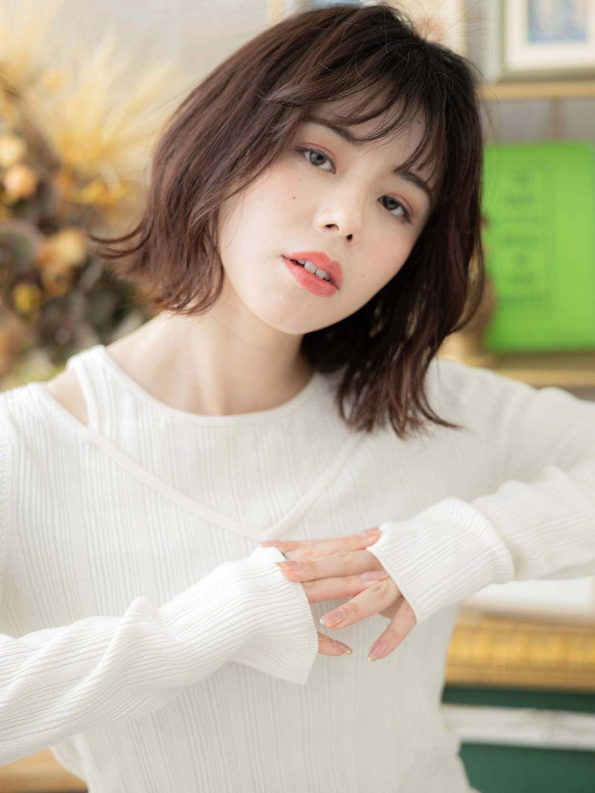 ゆるっとパーマをかけて作るこちらのウェーブボブは、乾かすだけでキマるので、朝時間がない方におすすめです。
