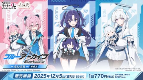 セガ ラッキーくじオンライン「ブルーアーカイブ ―ふわぷち― Vol.2」も、2025年12月頃に発売が決定しています。Vol.2では、同じくミレニアムサイエンススクールから、ネル、アスナ、カリン、アカネ、トキの描きおこしイラストが登場予定です。賞品構成はVol.1と同様の予定であり、続報に期待が高まります。