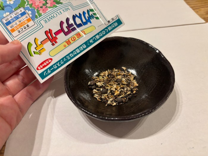 複数の花の種が入っていて、適当にバラまきするだけで、おしゃれなナチュラルガーデン風になるらしい……! 面白そうなのでまいてみることに。