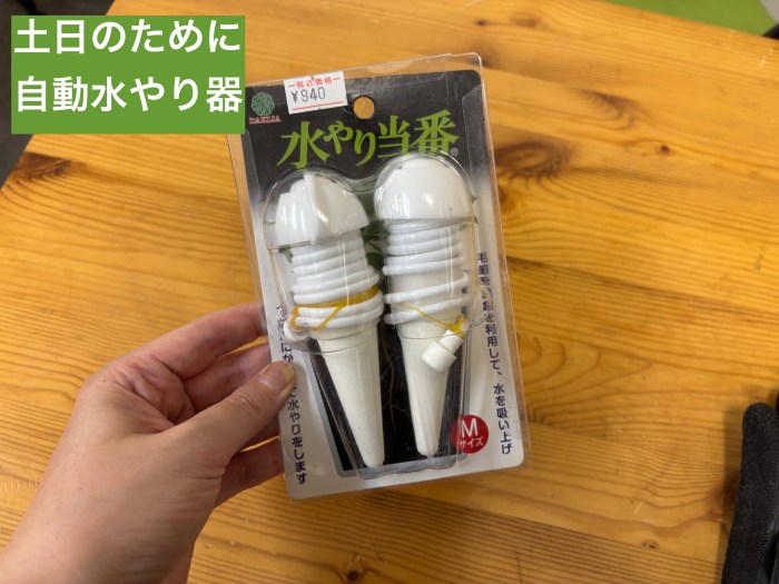 ちなみに、出勤日が週に3回しかないので、不在の間も水を切らさないように「水やり当番」という、サイフォンの原理で水やりをしてくれる自動水やり器具を使うことにした。