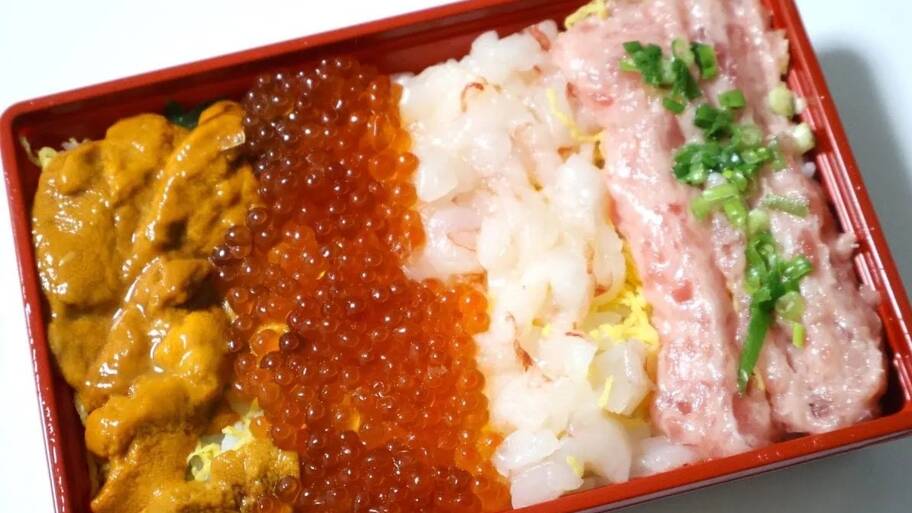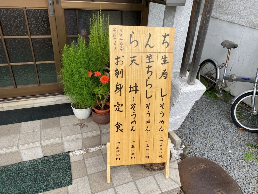 ランチメニューは、生寿し、生ちらし、天丼、お刺身定食の4種類。