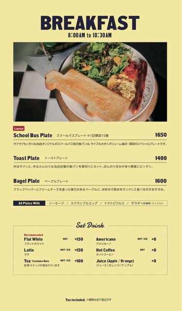 今回のお目当ては、1日15食限定のモーニングプレート(8時オープンで9時頃伺いましたがこの日は食べることができました。こちらが食べたい方は朝の早めの時間がおすすめ!)
