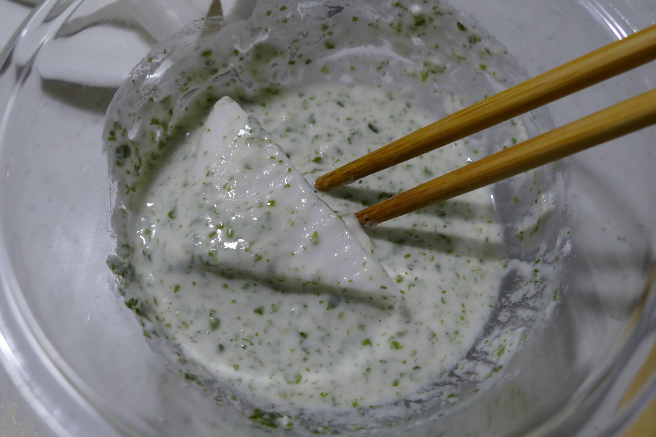 薄力粉、青のり、水を混ぜて衣を作ります。