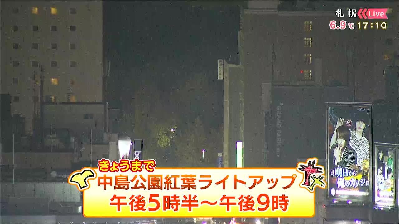 カメラは中島公園の方向を向いています。中島公園の紅葉ライトアップはきょう3日(月)までで、午後5時半から午後9時までです。
