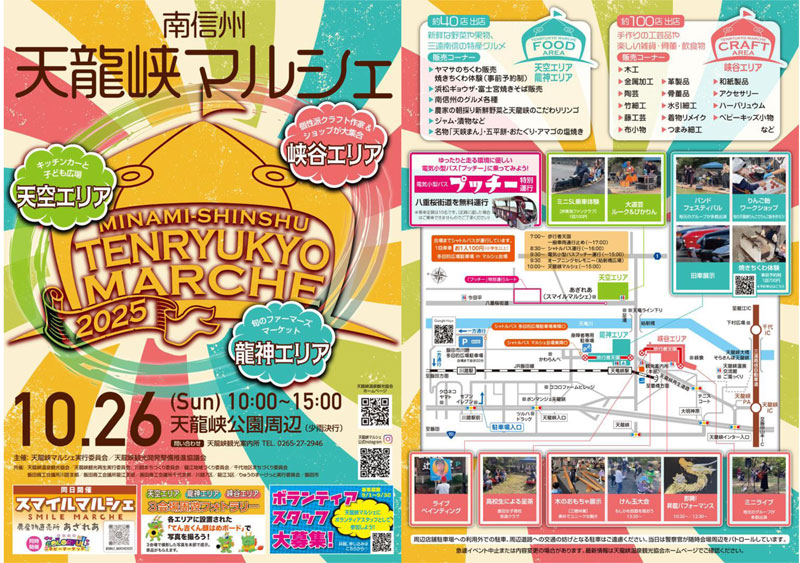10/26(日)約140店が集結『南信州 天龍峡マルシェ』開催!フード・クラフト・体験が楽しめる3エリアが展開する天龍峡エリア最大級の秋のイベント@長野県飯田市