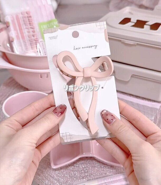 mapleplpl2さんがセリアで購入したのは、挟むだけで簡単にヘアアレンジができる「バンスクリップ マットリボン」。横向きに大きく開くタイプで、髪を挟むと左右どちらから見てもリボンの形に見えるようです。「こんなかわいいの100均にあるんや」と、クオリティの高さに驚いている様子♪
