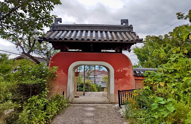 振り返ると山門の向こうに深草の町並みが見えて晴れやかな気分になります。