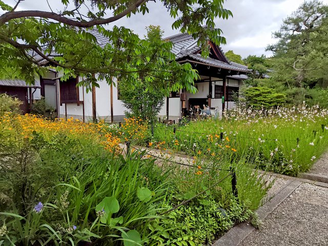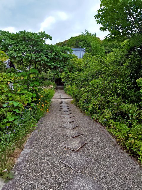 山門の向こうには本堂へ続く参道、その両側には可愛い草花や樹々が生い茂っていました。