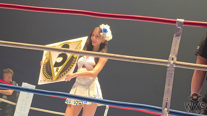 グラビアタレントの斎藤恭代が「-70kg世界最強決定トーナメント・決勝ラウンド」にスペシャルラウンドガールとしてリングに登場。