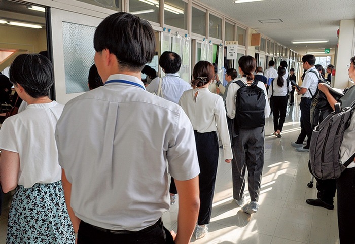 長島校長によるとこの日、県内外から300人ほどが来校。国語、数学、英語、道徳など計10クラスの授業が公開され、来校者は見学や生徒への質問などを通じて学びを深めた。