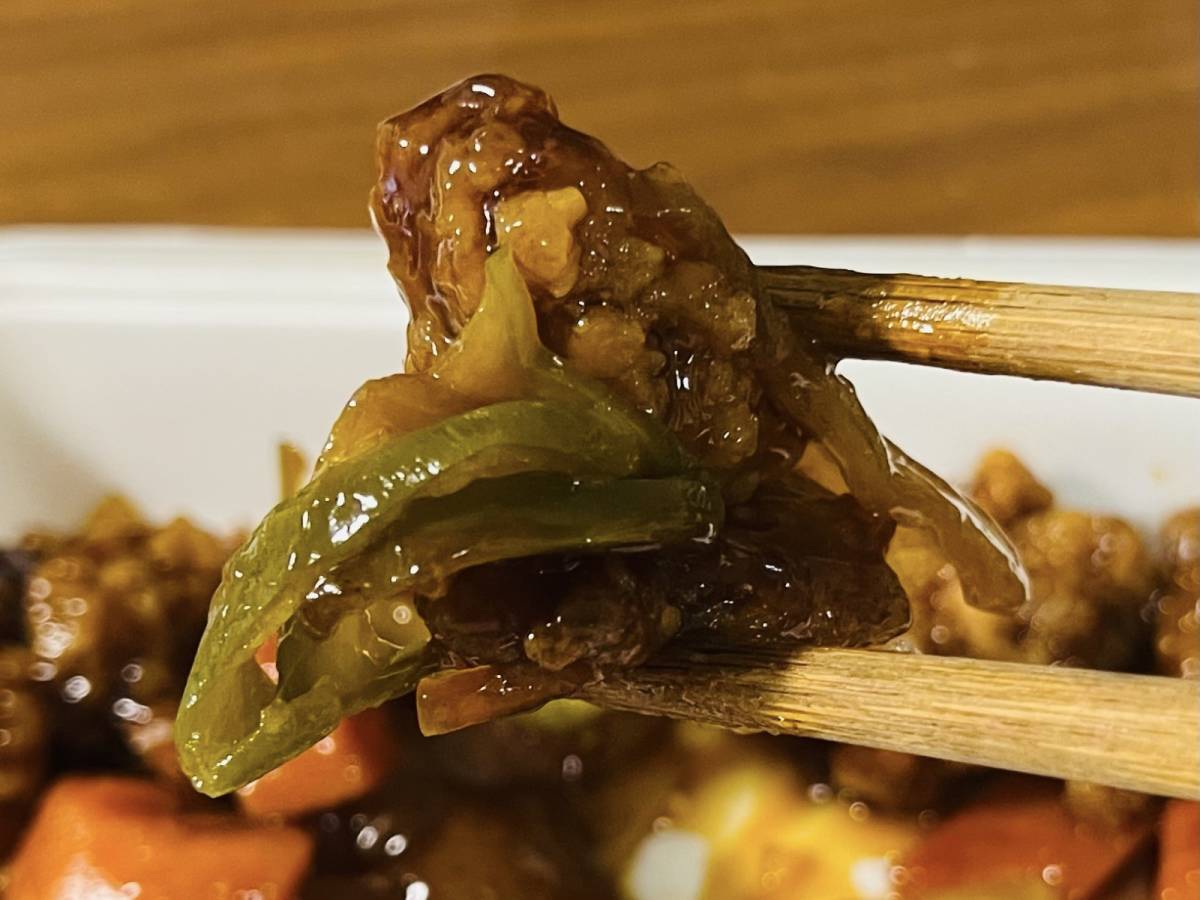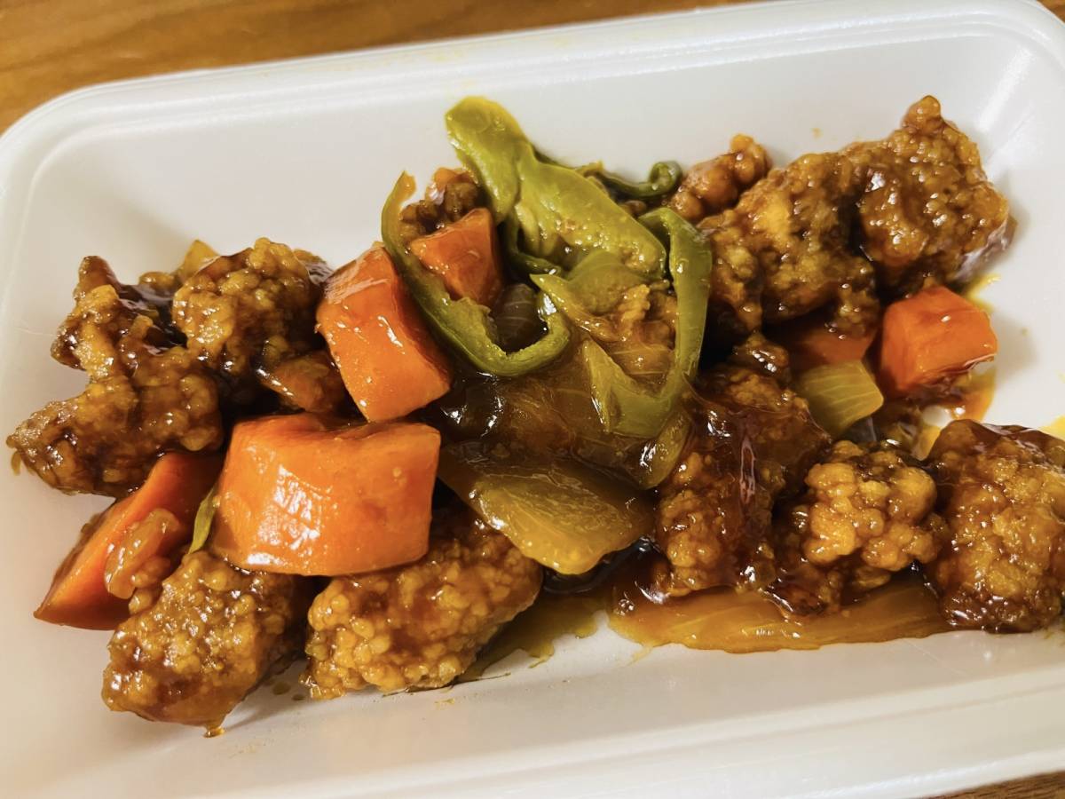 大きめの豚肉&人参がゴロゴロと入った、お店オリジナルの酢豚。