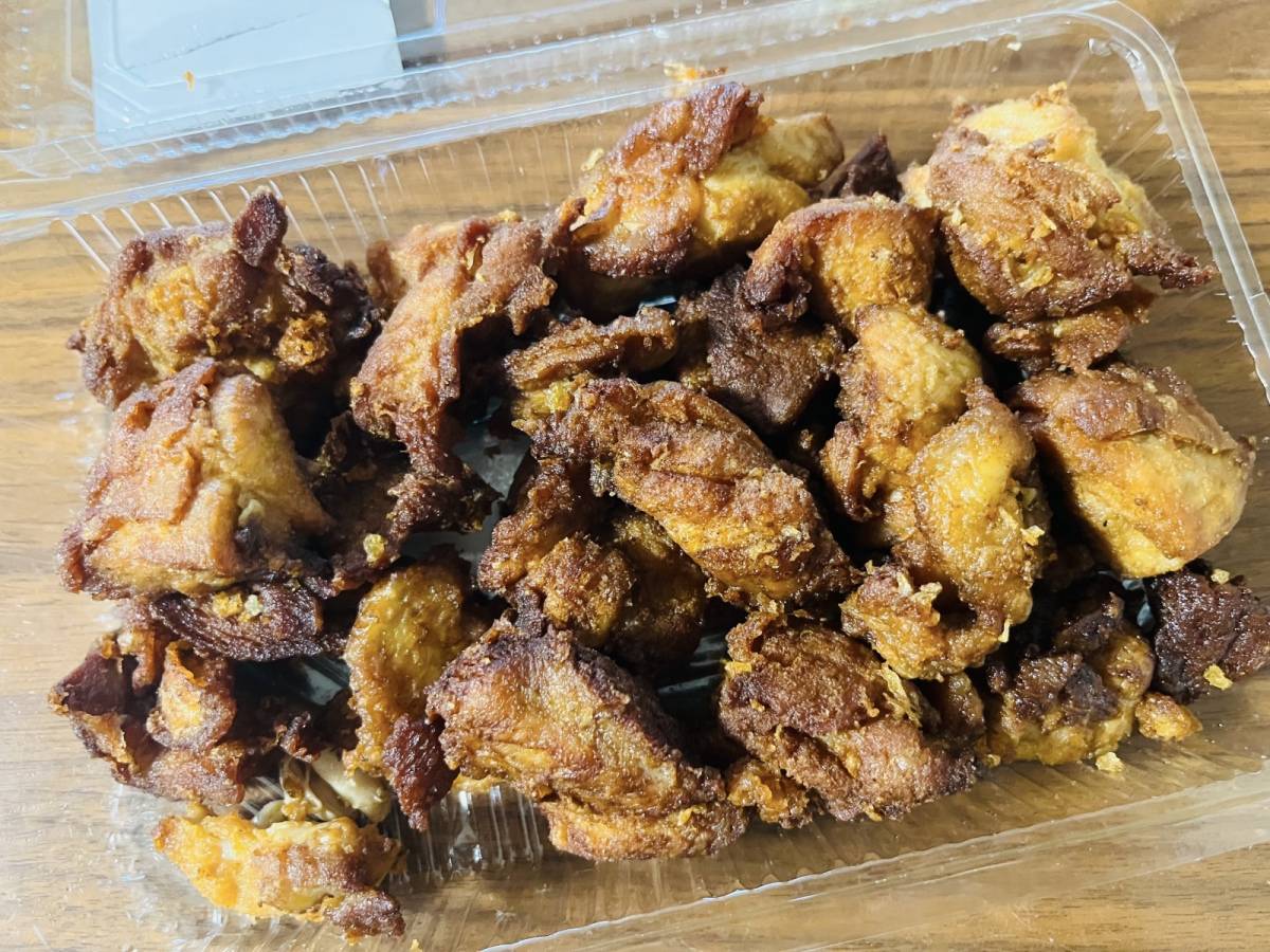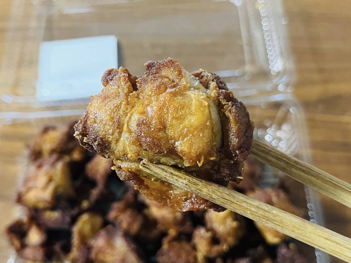 ひとくちサイズで食べやすい、薄衣の鶏の唐揚げ。