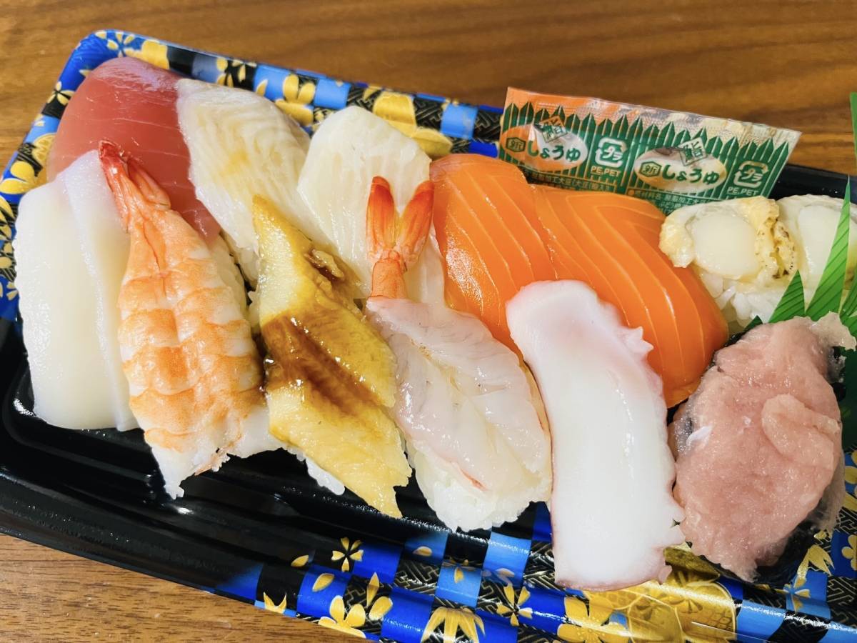 マグロやサーモン・えび・いかなど、人気のネタをたっぷり楽しめるお寿司。