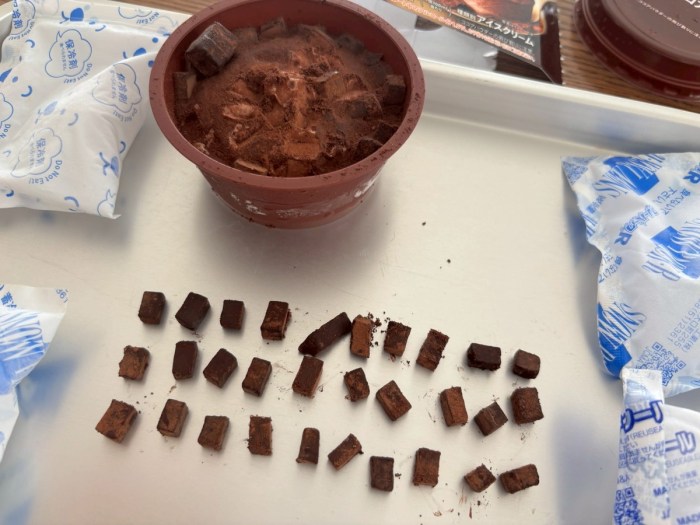 注意書きにあったココアパウダーの飛び散りについては、慎重に食べたこともあって特にむせたり机が粉まみれになることはなかった。