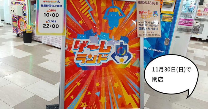 立川駅北口の『MEGAドン・キホーテ 立川店』5階にあるゲームセンター『ゲームランド 立川店』が閉店するようです。