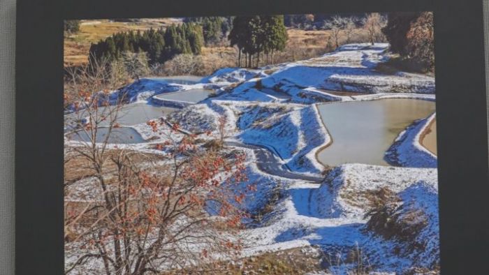 写真展は上越市合併20周年を記念して開かれ、今回は「春」「夏」に続く「秋」の3回目です。会場には寺尾さんがこれまでに上越市内で撮りためた秋の風景40点が展示されています。