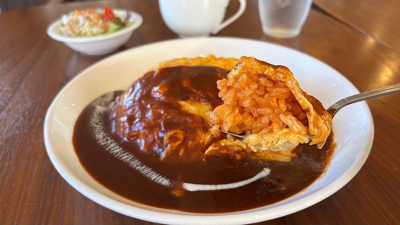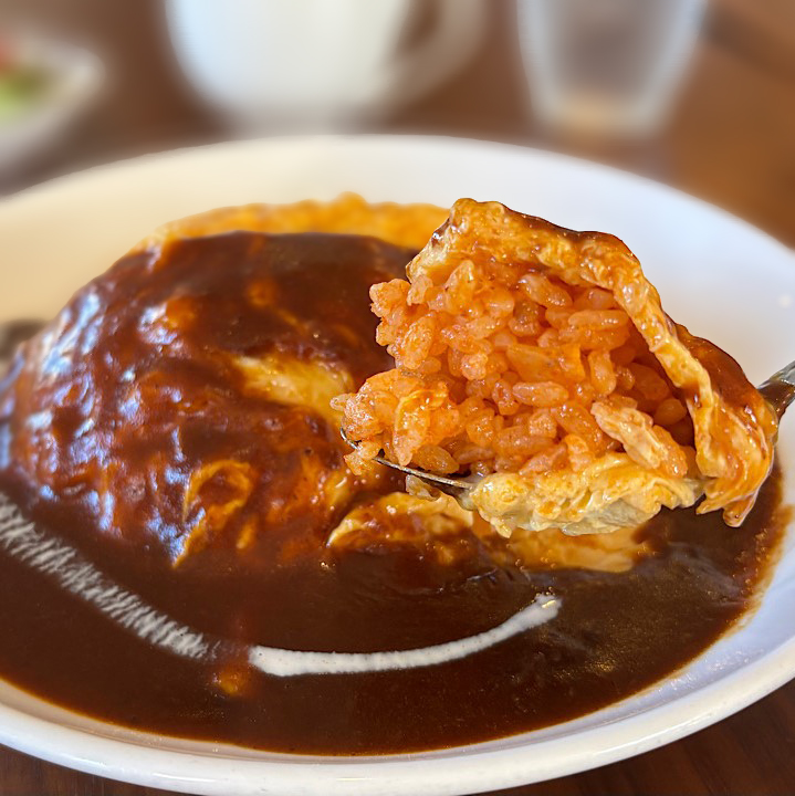 ケチャップライスは塩分控えめであっさりとした味付けになっていて、卵本来のうま味もしっかりと楽しめる仕上がりです。デミグラスソースは深いコクを感じられますが、くどさはまったくありません。