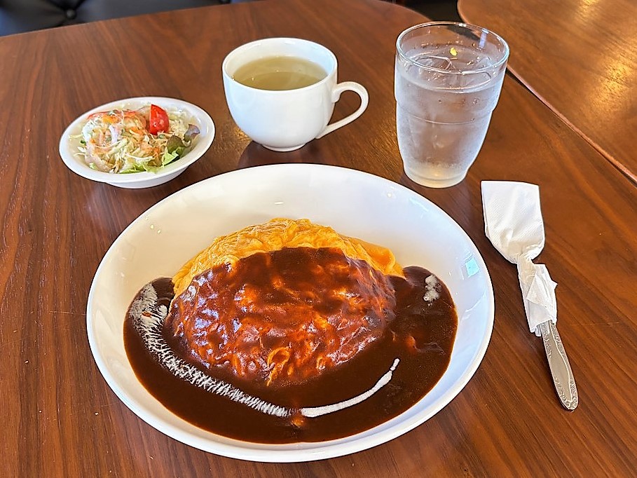 オムライスランチは、サラダとスープがついて税込み1000円。大盛りはプラス200円ですが、中・高・大学生は無料です。
