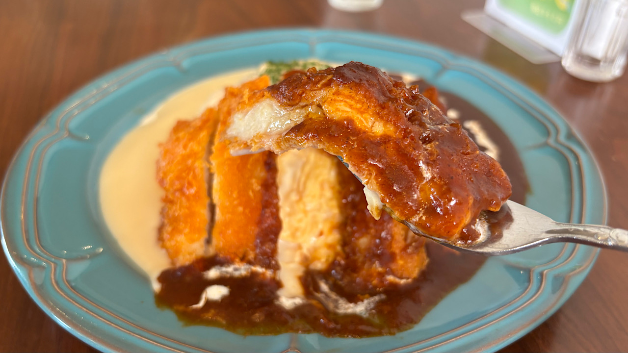 トッピングのチキンカツはやわらかく、デミグラスソースとの相性も抜群。