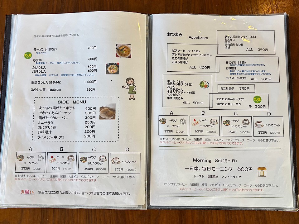 昼も夜も注文できる「モーニング」に、新湊名物「かけ中」も