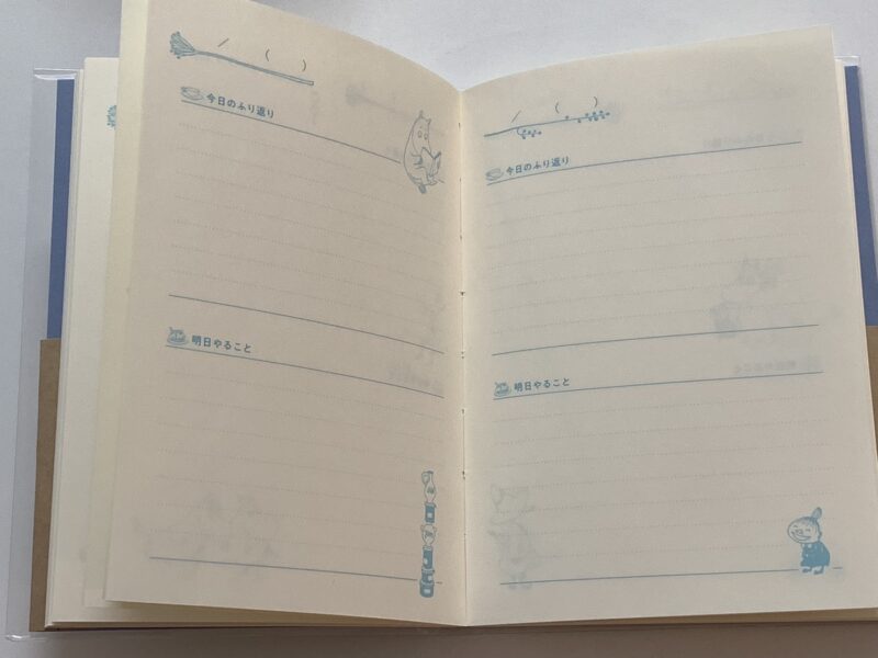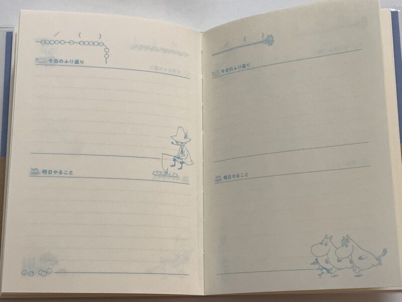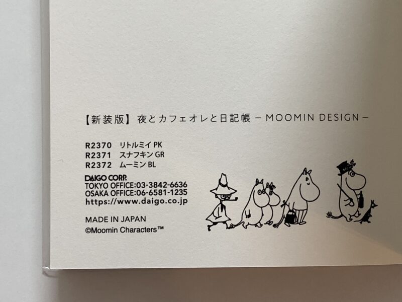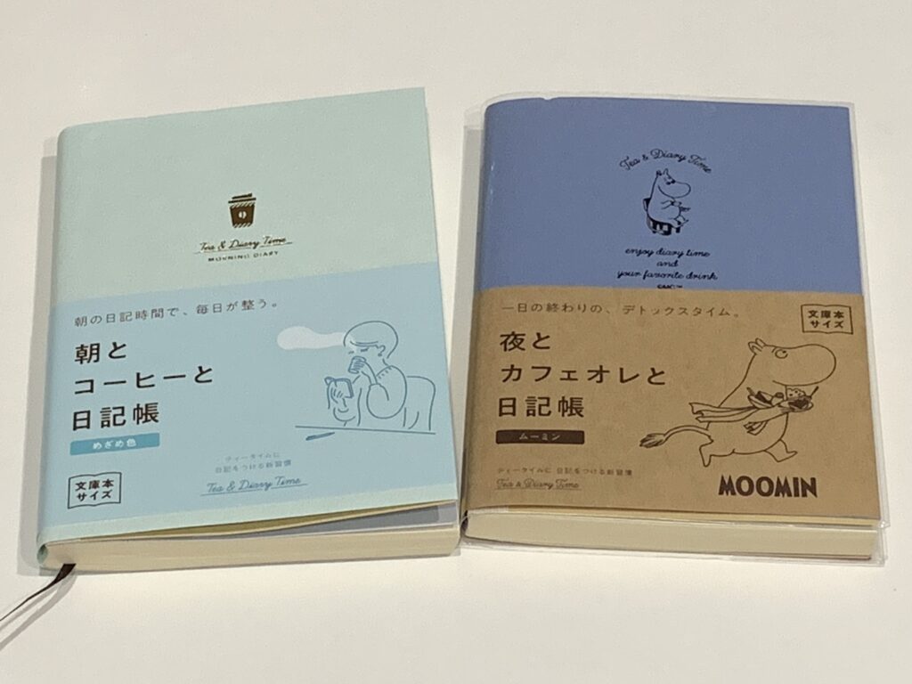 これまでどおり朝のものでもよかったんですが、このムーミンデザインは夜版しかなかったため、「夜とカフェオレと日記帳」を購入しました。